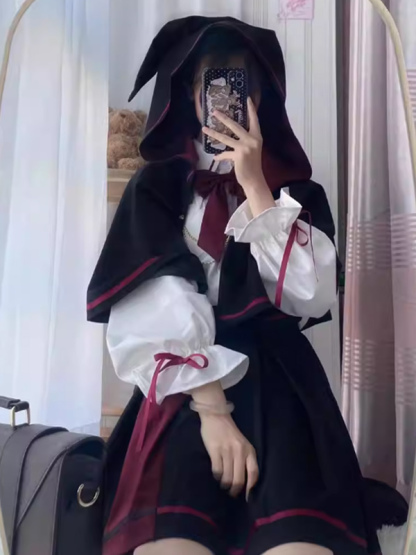 Gothic Lolita Outfits Black Jacquard Bows Long Sleeves Skirt Cape