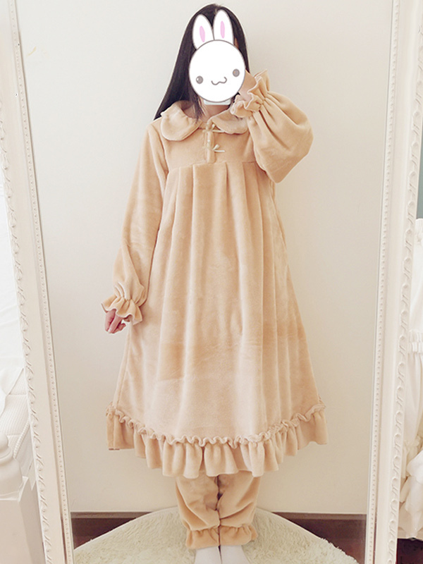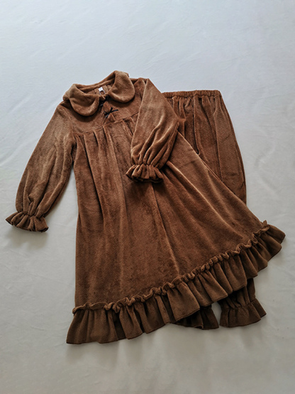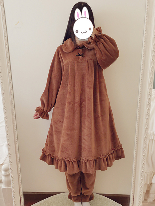 Gothic Lolita Outfits Light Brown Bows Ruffles Long Sleeves Pants Top
