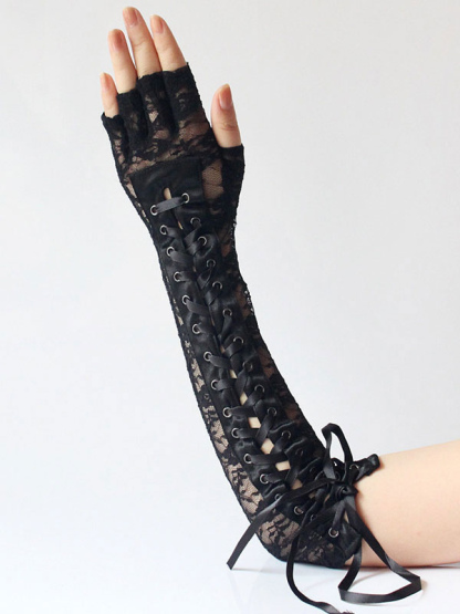 Gothic Lolita Oversleeves Lace Up Lace Polyester Fiber Miscellaneous Black Lolita Accessories