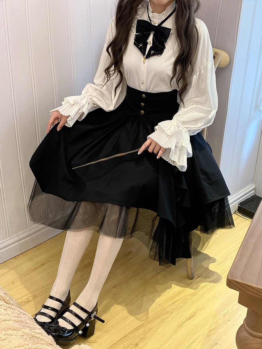 Gothic Lolita SK Black Tiered Lolita Skirts