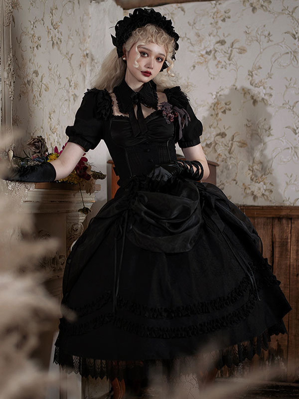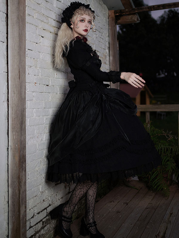 Gothic Lolita Skirt Black Bows Ruffles Lolita Skirts