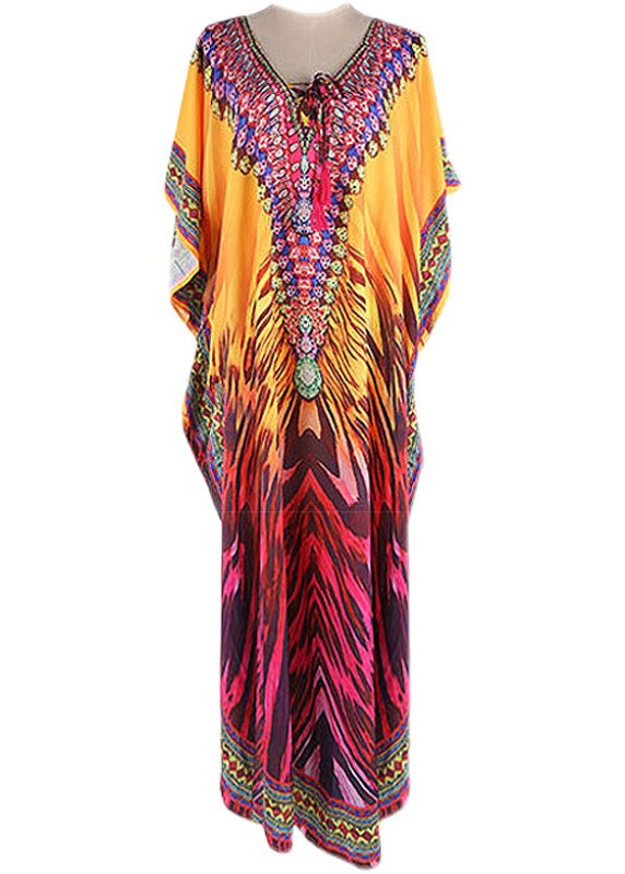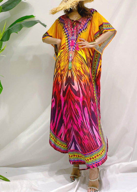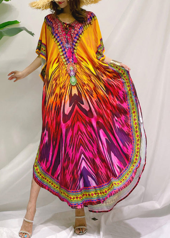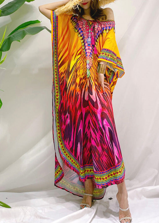 Gradient Color O-Neck Print Sequins Maxi Holiday Dress Batwing Sleeve