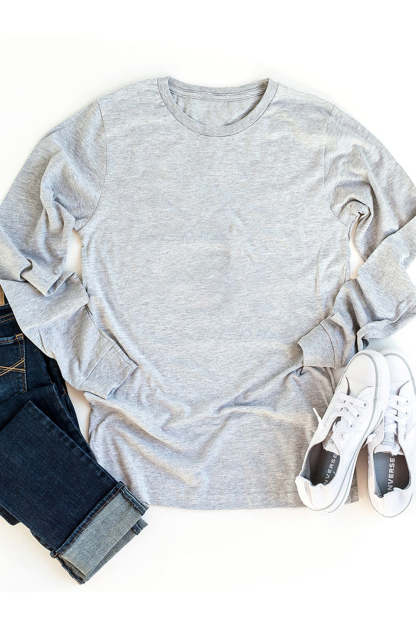 Gray Plain Crew Neck Long Sleeve Top