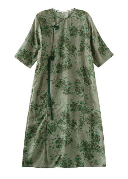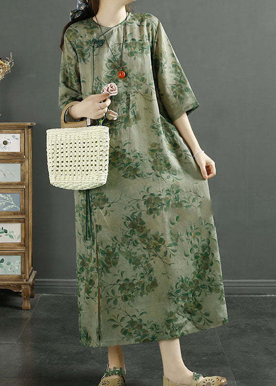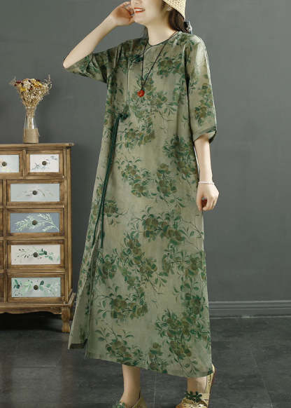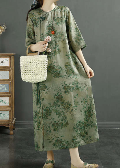 Green Pink Patchwork Linen Long Dress Tasseled Button Summer