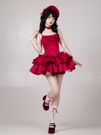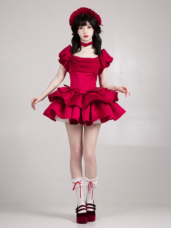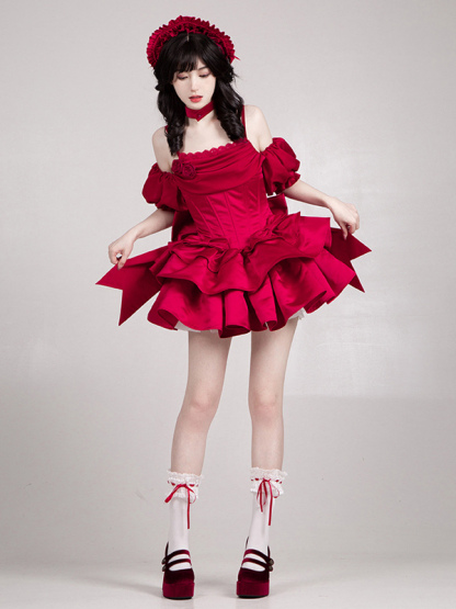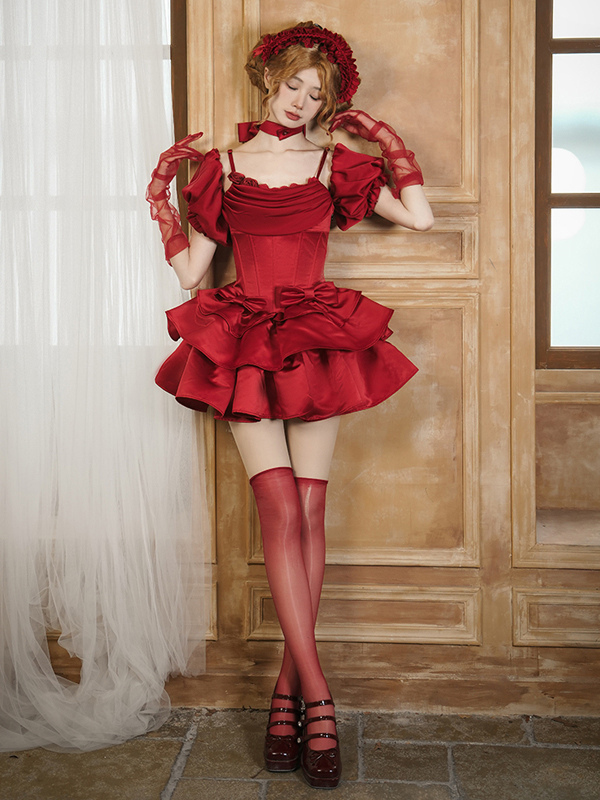 Halloween Gothic Lolita Dresses Bows Ruffles Red Dresses