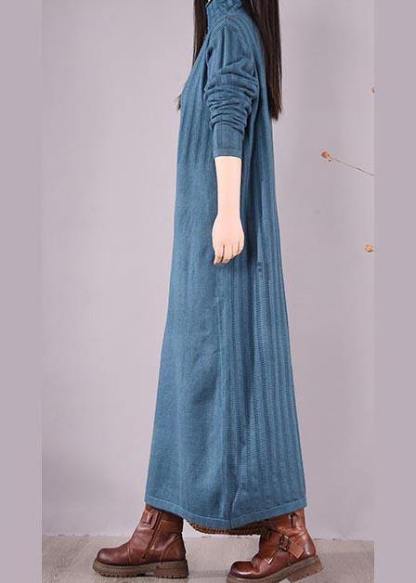 Handmade Blue Dresses High Neck Long Spring Dresses