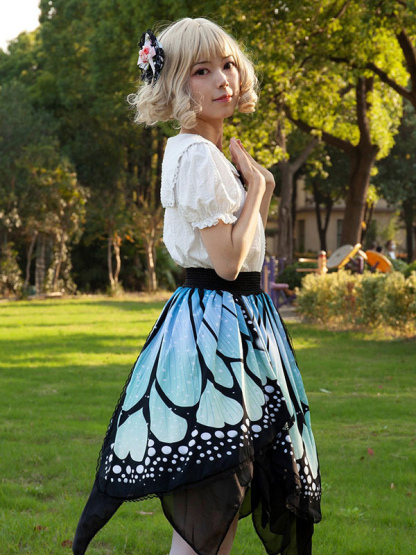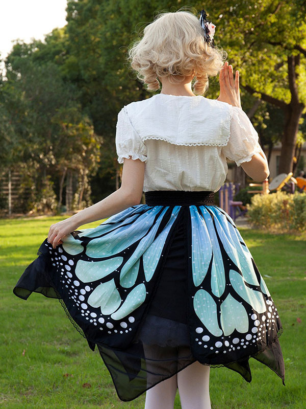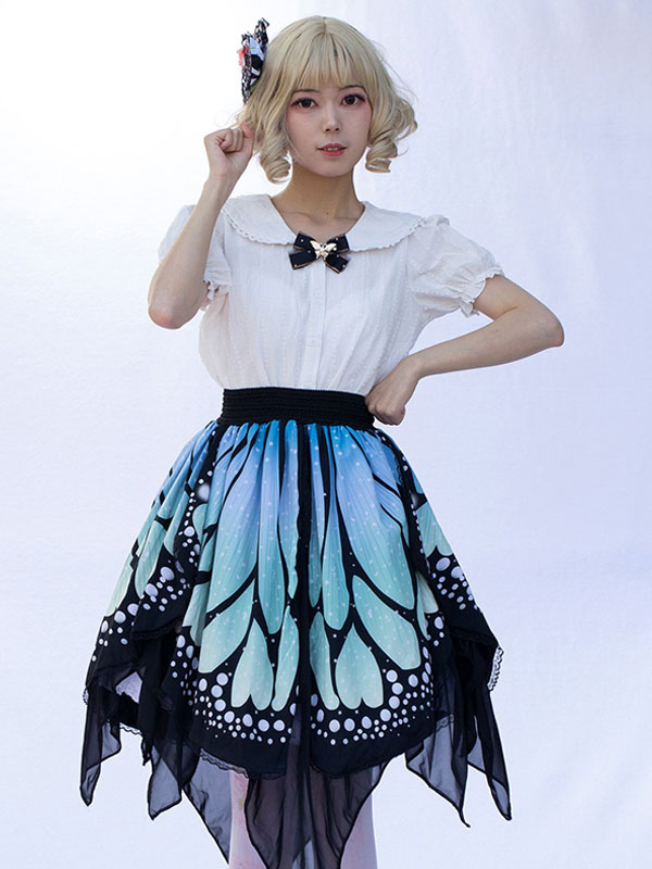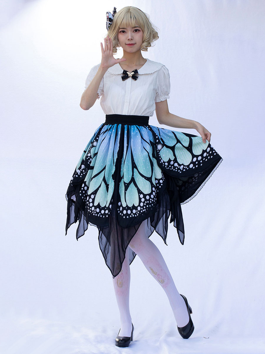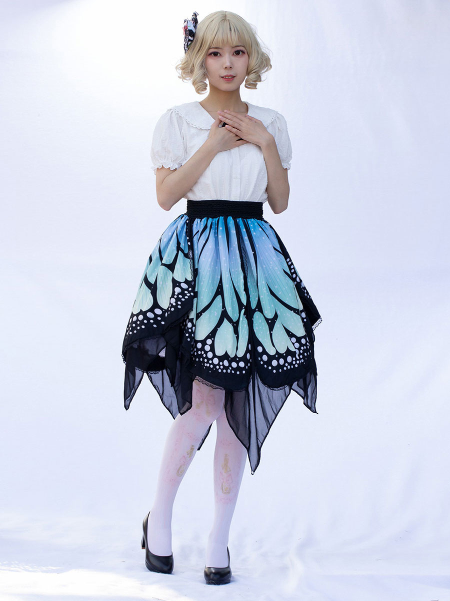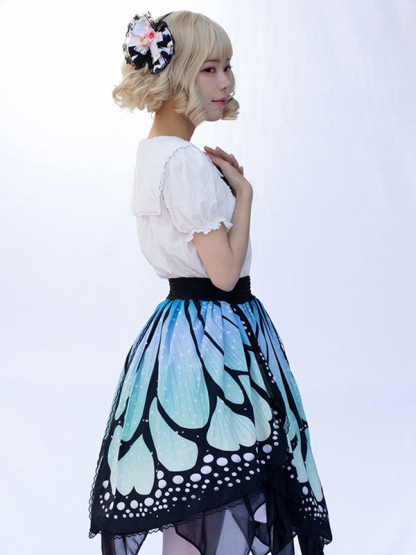 Harajuku Fashion Lolita Skirt Butterfly Ruffles As Image Floral Print Lolita Skirts