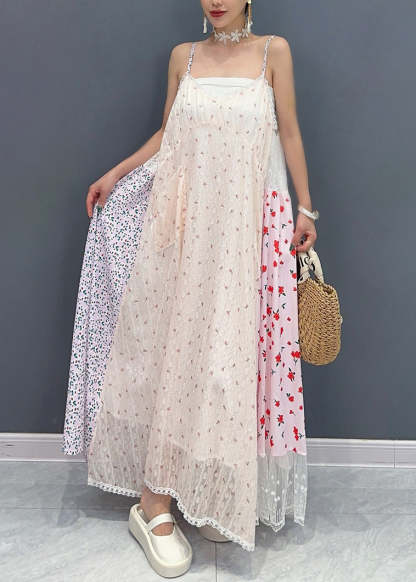 Italian Print Patchwork Tulle Spaghetti Strap Dress Sleeveless