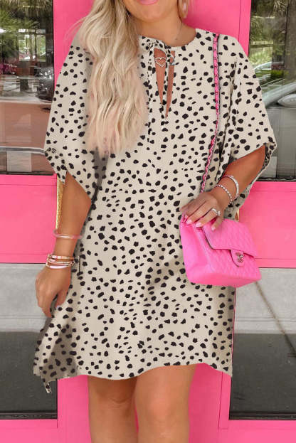 Khaki Animal Print Half Sleeve Shift Dress