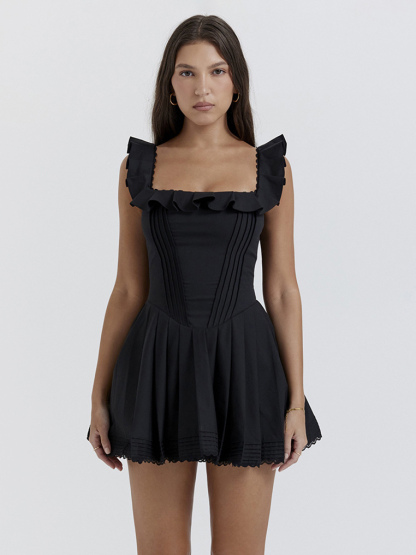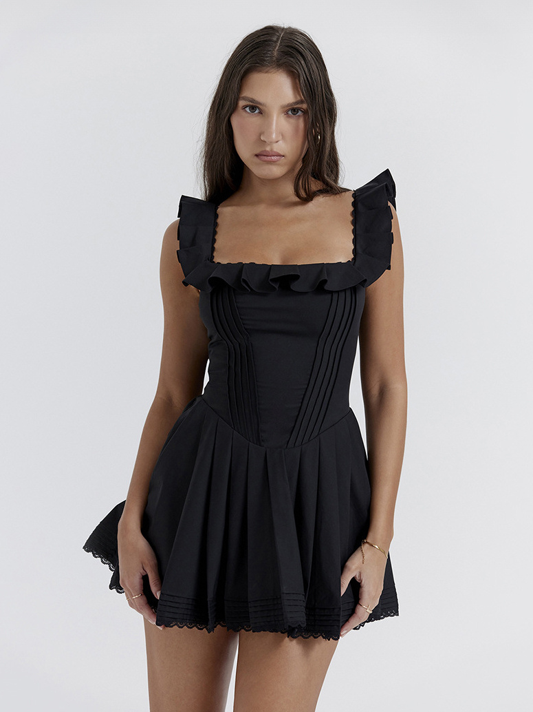 Little Black Dress Ruffles Square Neck Backless Graduation Party Mini Dresses