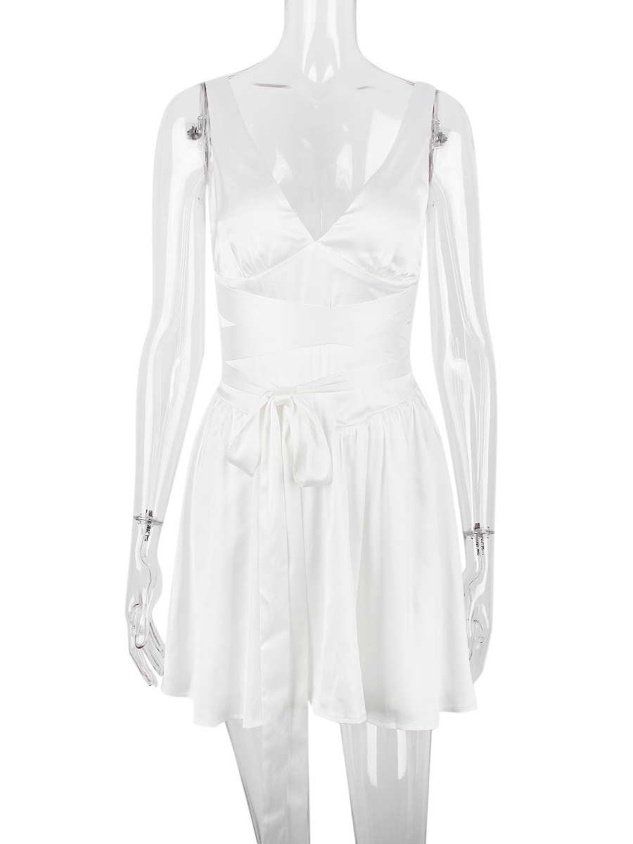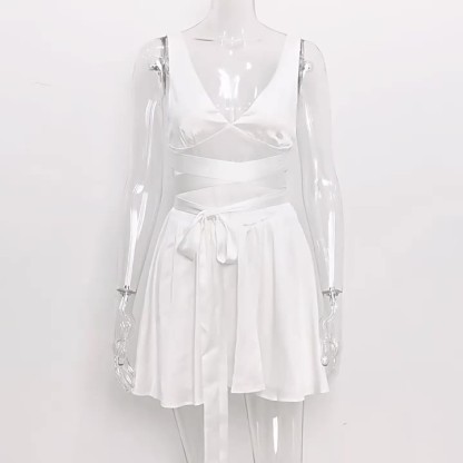 Little White Dress Lace Up Front Backless Sleeveless Graduation Short Dresses
