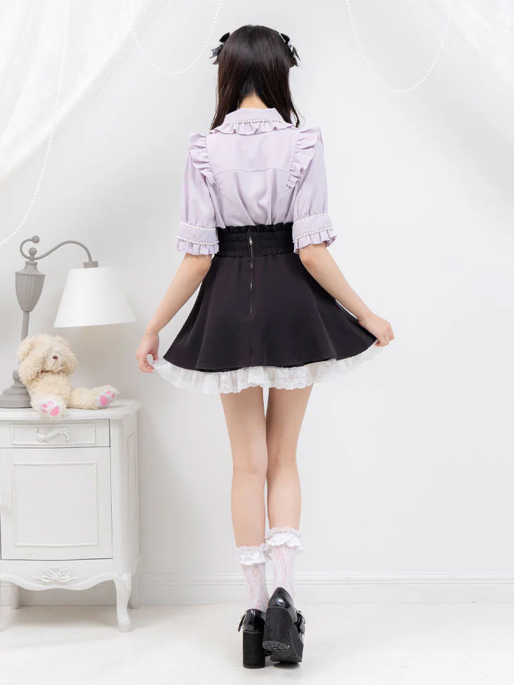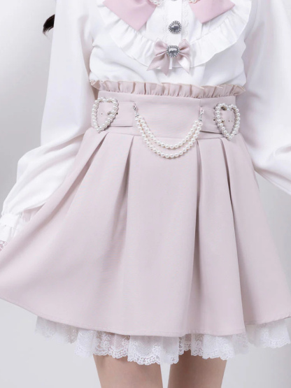 Lolita Skirt Ruffles High-Waist Pearl Decorate Short Skirt Lace Lining Petite Pink Mini Skirt