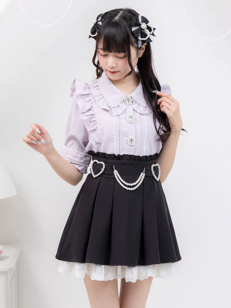Product Description: Radiate kawaii charm in this Lolita Mini Skirt, featuring high-waist ruffles and pearl decorations for doll-like elegance. The lace-trimmed lining adds delicate detail, while the petite pink design creates sweet volume. Perfect for Sweet Lolita coordinates or fairy-tale inspired outfits.