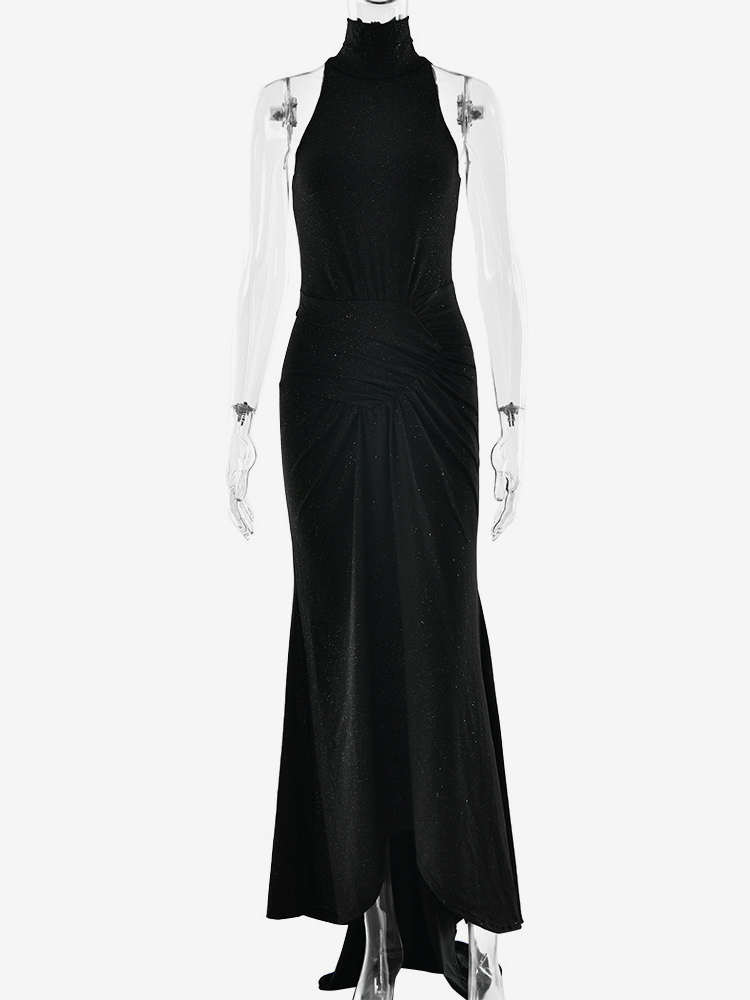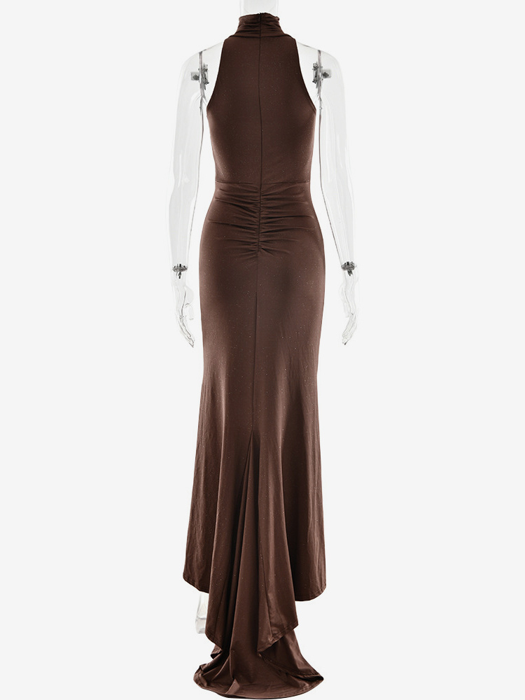 Maxi Party Dress High Neck Sleeveless Mermaid Ruched Bodycon Dress For Women 2025