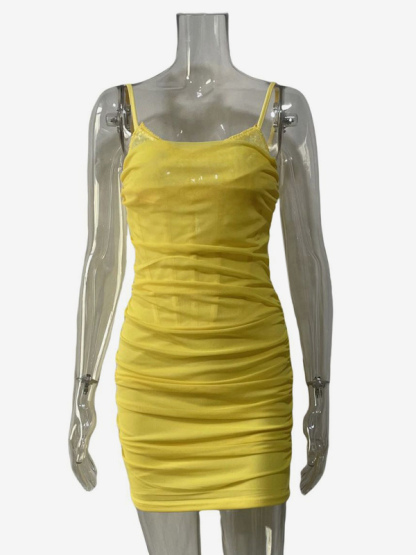Mini Slip Dress With Spaghetti Straps Ruched Bodycon Dress For Women 2025