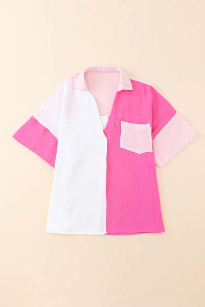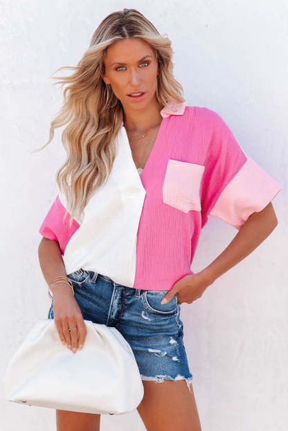 Rose Collared Neck Color Block Polo Shirt