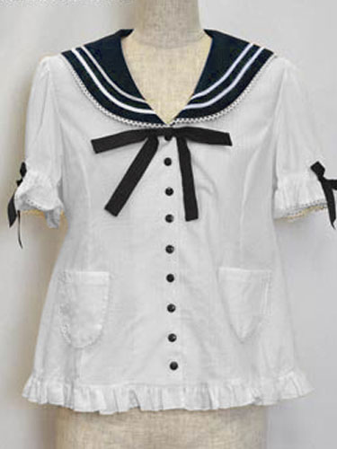 Sailor Lolita Outfits Deep Blue Short Sleeve Shirt With Pleated Jumper Skirt