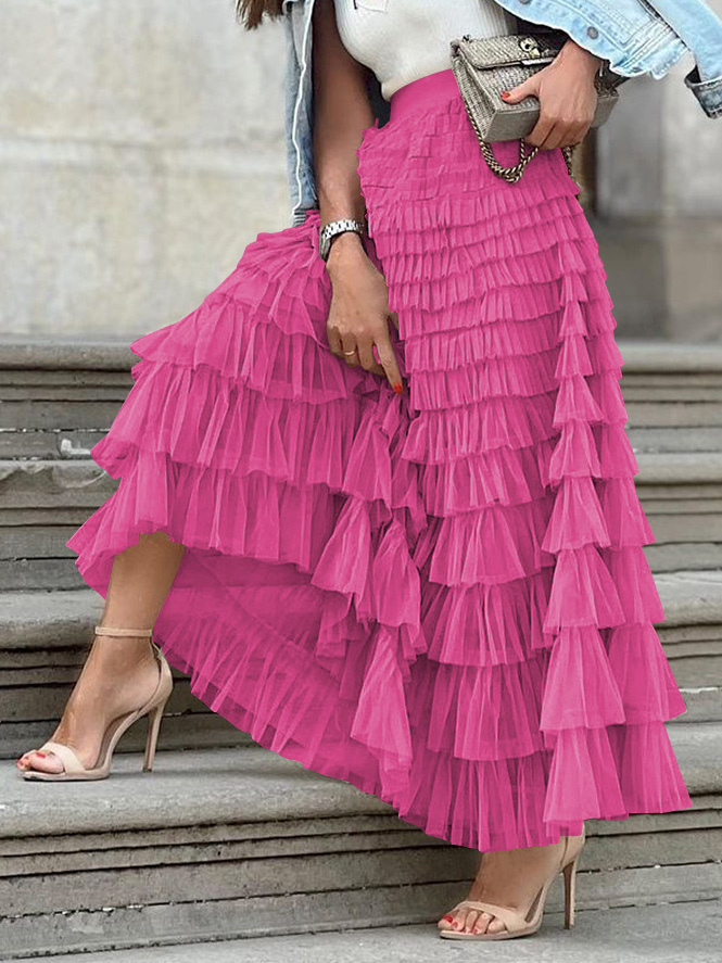 Skirts Pink Polyester Natural Waist Casual Stretch Fall Long Women's Bottoms
