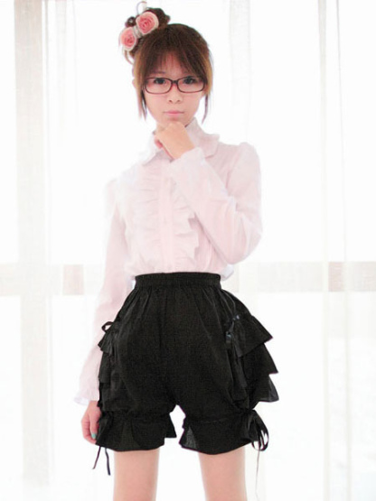 Sweet Black Pink Lolita Bloomers Layered Ruffles Bow Ribbon