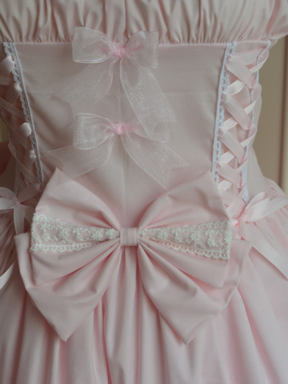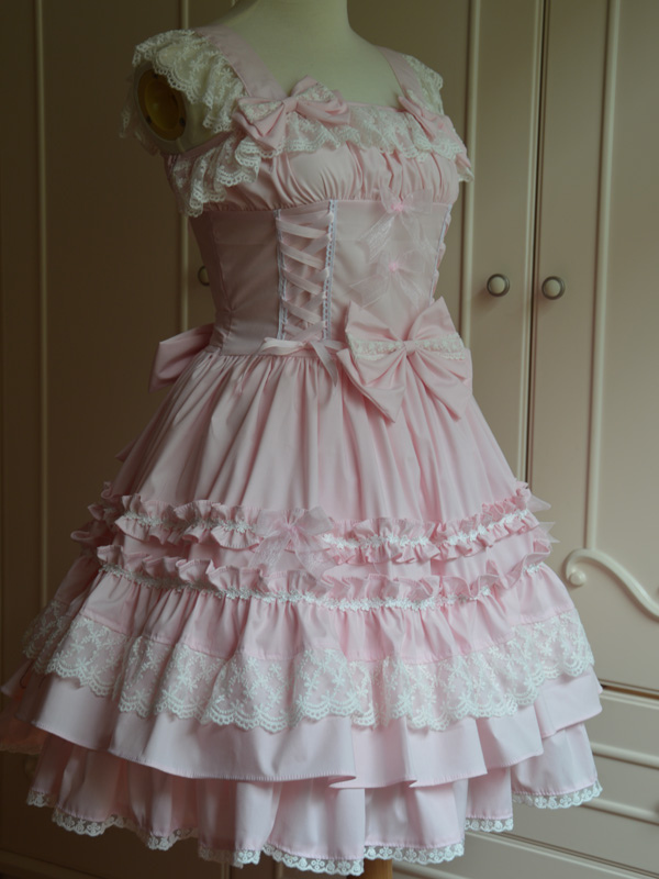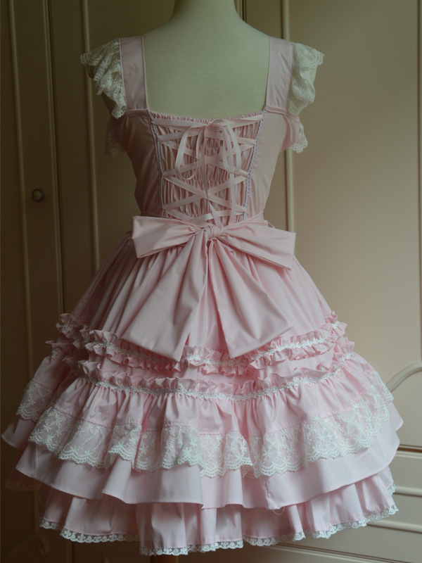 Sweet Light Pink Cotton Lolita Jumper Skirt Lace Trim Lace Up Ruffles