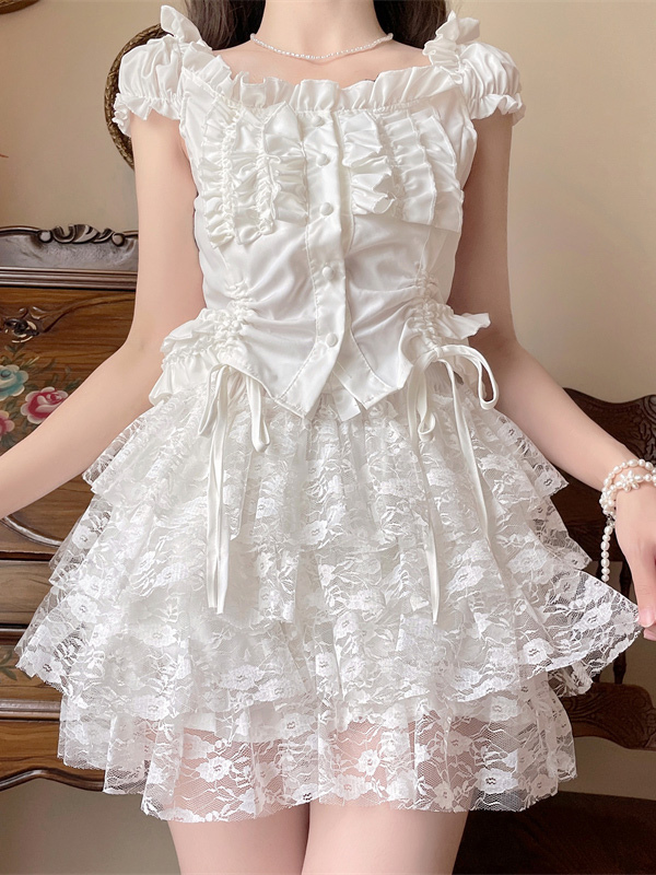 Sweet Lolita Bloomers Tiered Ruffles Lace Loose White Lolita Pant