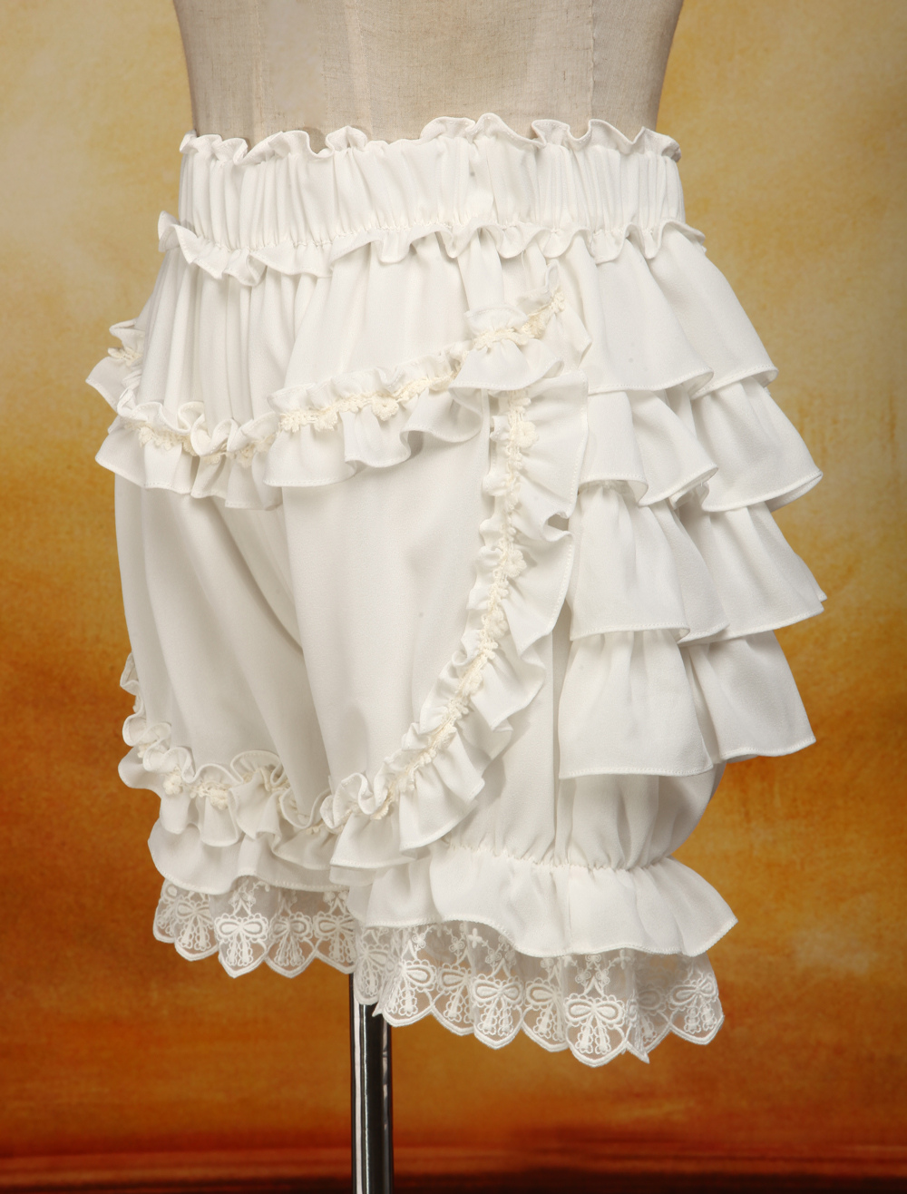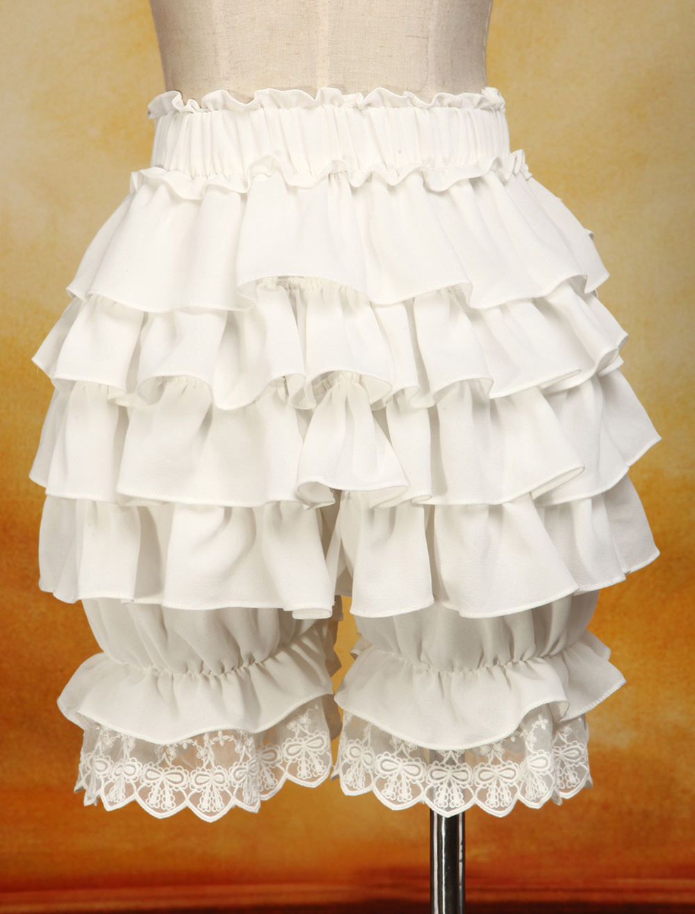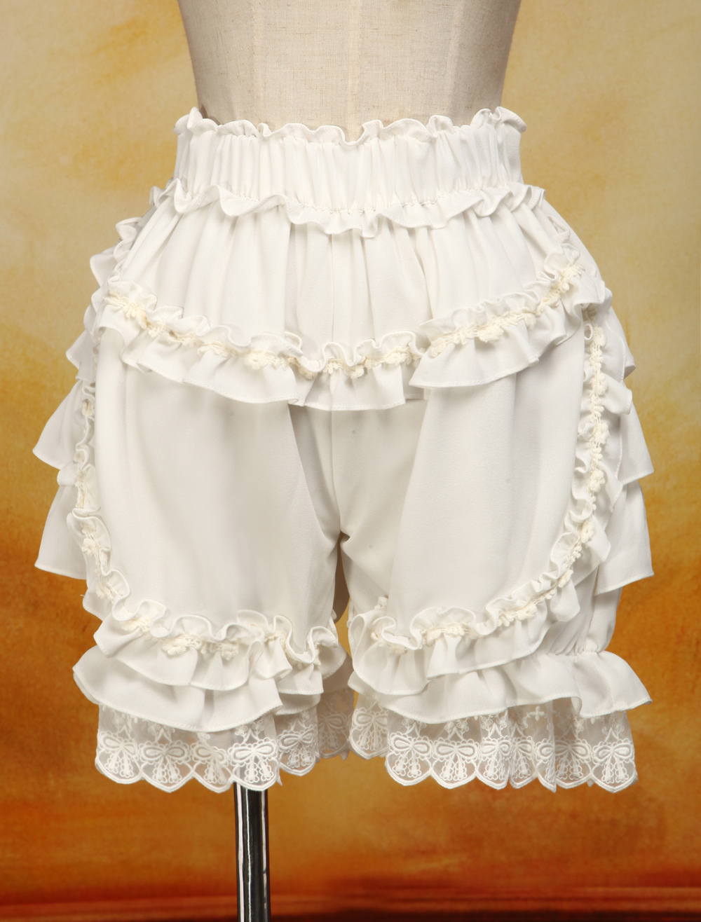 Sweet Lolita Bloomers White Cotton Lace Trim Ruffles