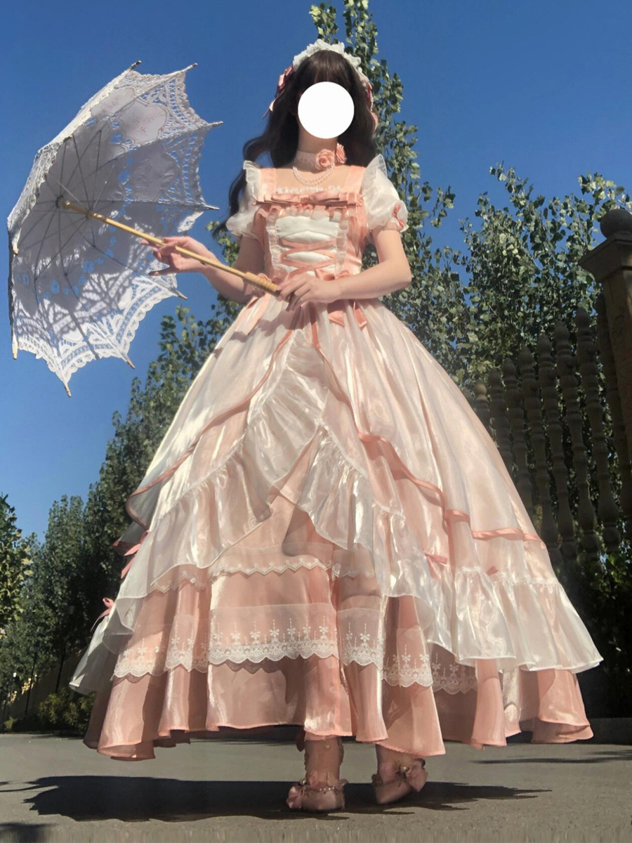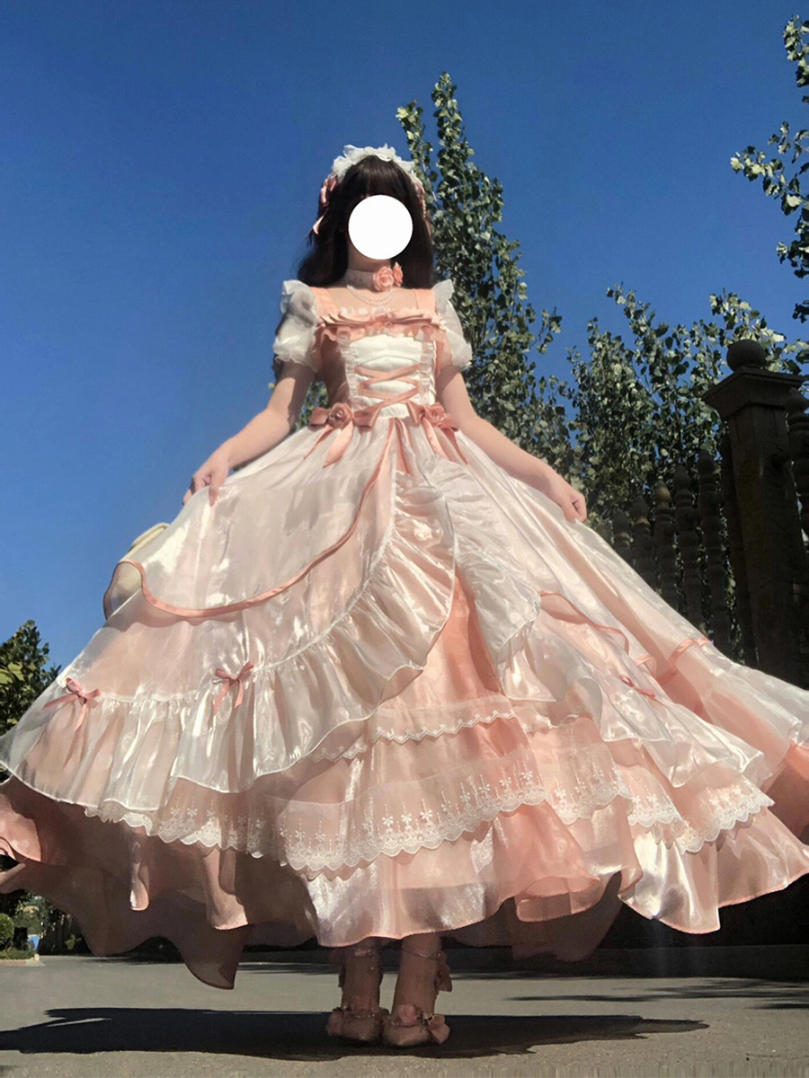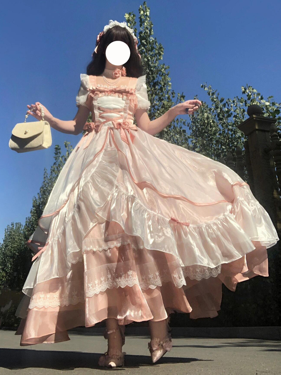 Sweet Lolita Dress Mesh silk Short Sleeves Layered Tiered Dress Tea party style Long Dress