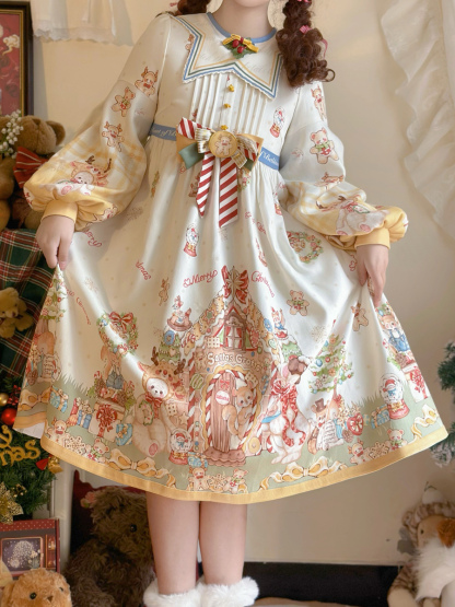 Sweet Lolita Dress Polyester Long Sleeves Bows Sweet Christmas Lolita Dress