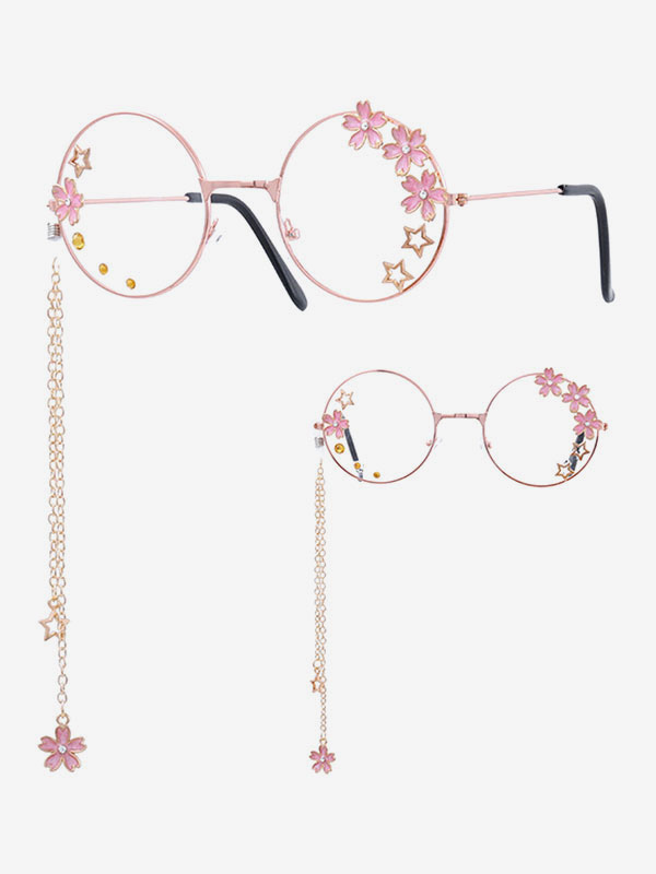 Sweet Lolita Glasses Pink Chains Flowers Stars Round Frame Sunglasses