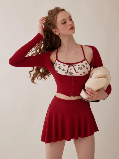Sweet Lolita Outfits Red Floral Print Bows Long Sleeves Overcoat Pants