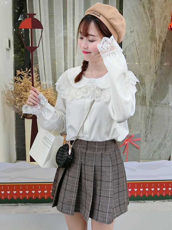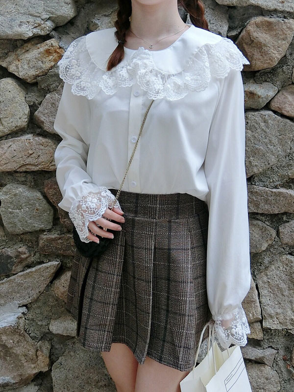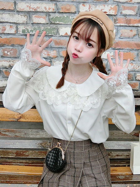 Sweet Lolita Shirt Lace Chiffon White Lolita Blouse