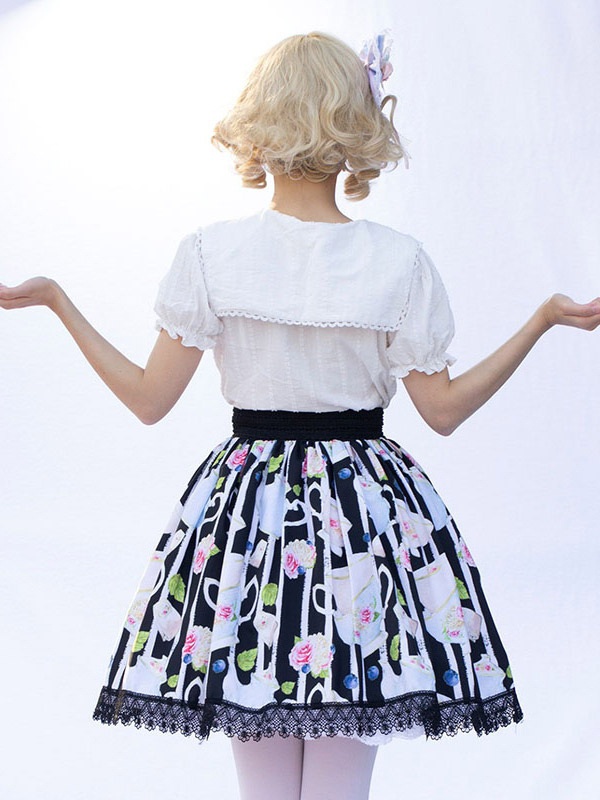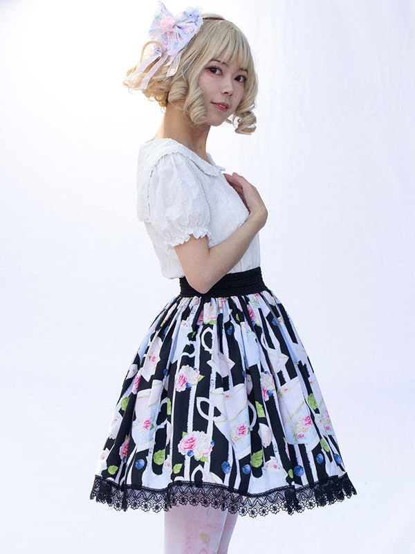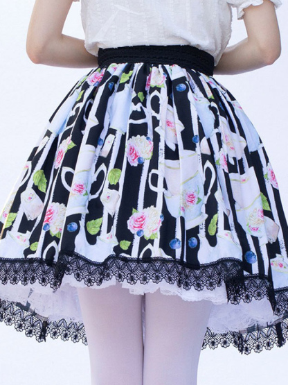 Sweet Lolita SK Angel Beats Floral Print Black Ruffles Lolita Skirts