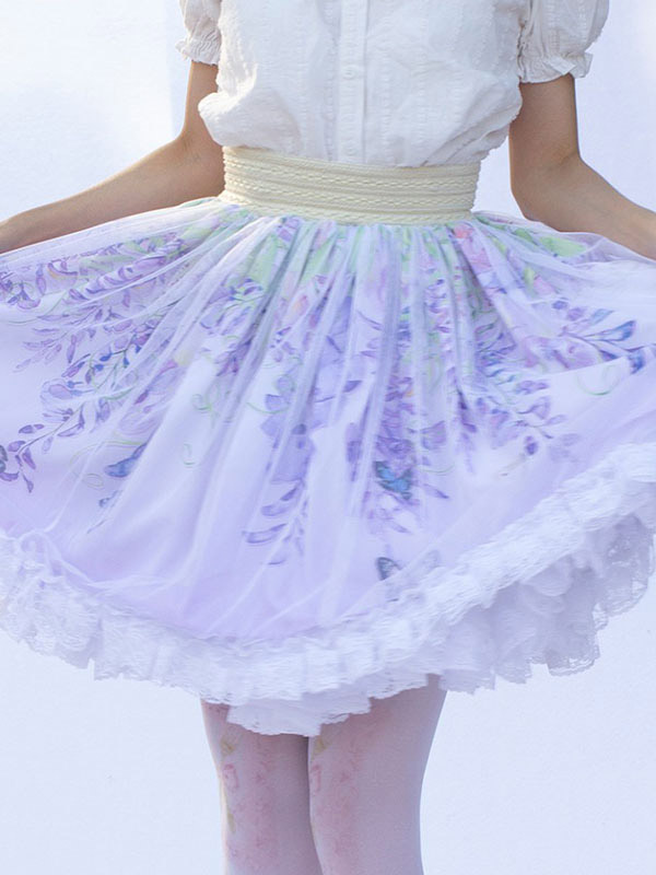 Sweet Lolita Skirt Ruffles as image Floral Print Lolita Skirts
