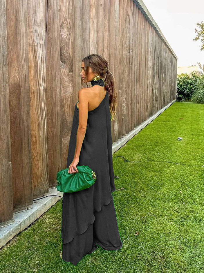 Two Piece Sets Green Sexy Top Summer Sleeveless High Collar Layered Women Outfit