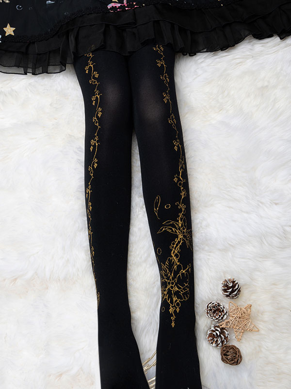 Velvet Lolita Pantyhose Flower Feather Print 120D Lolita Stocking