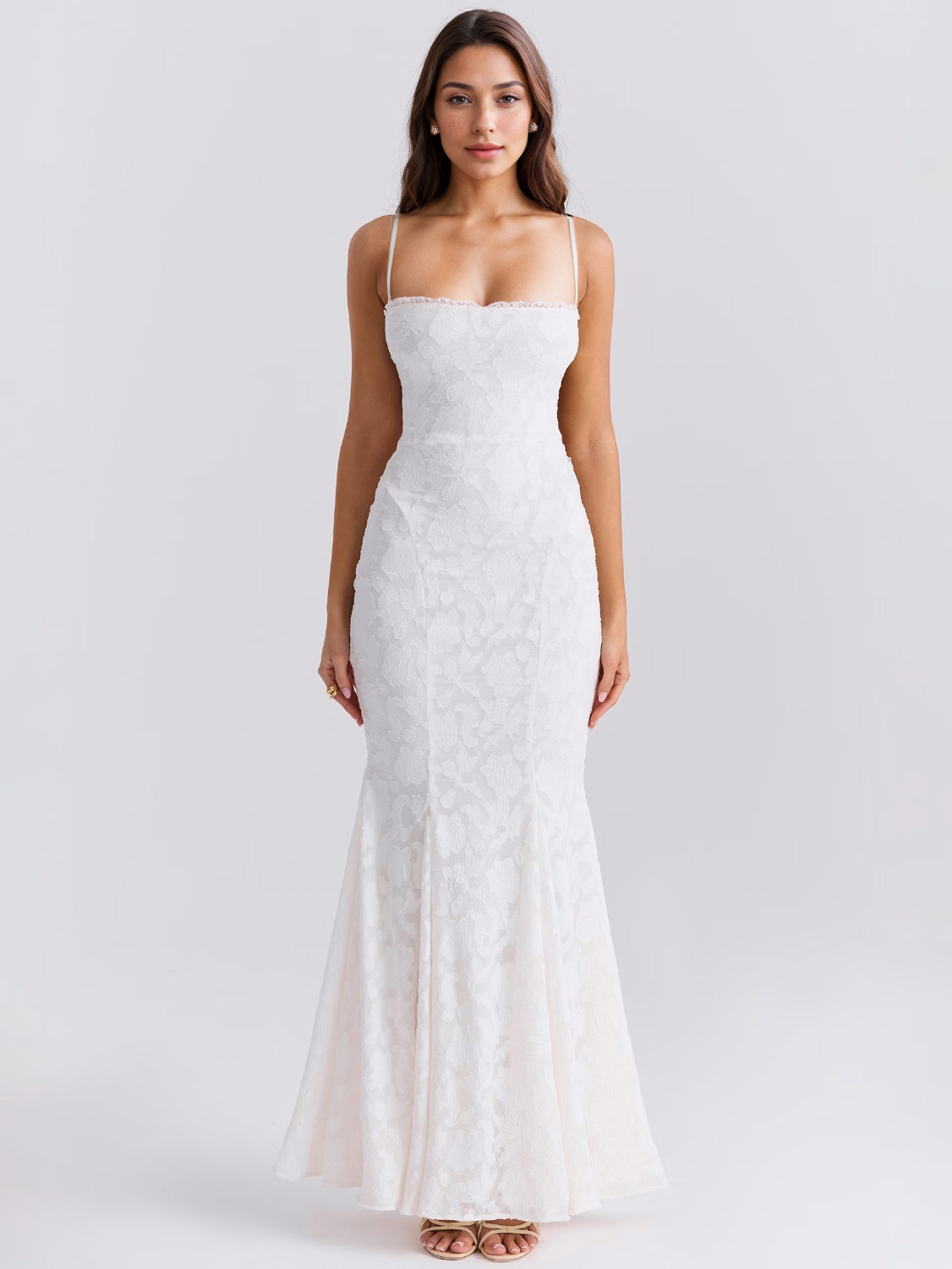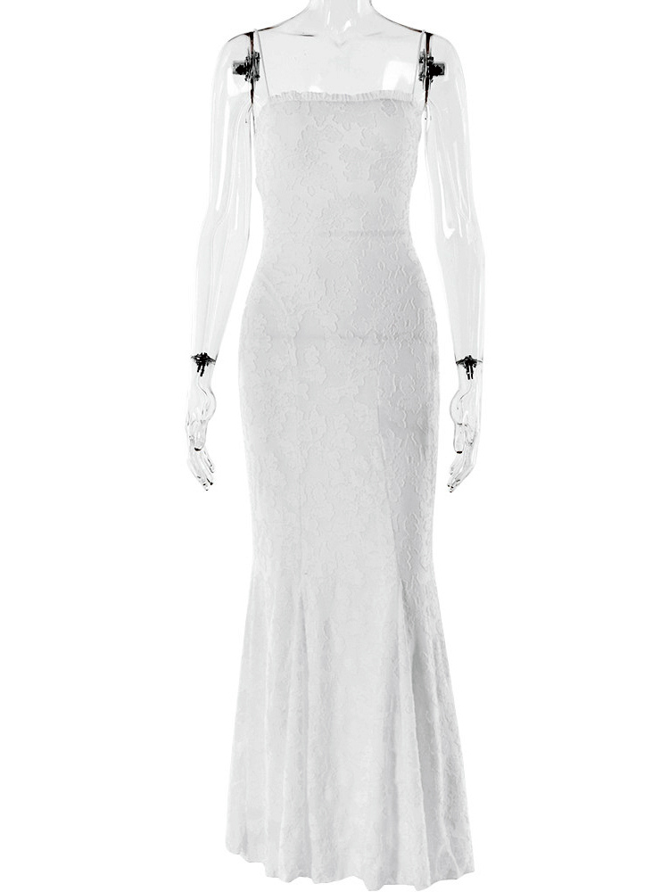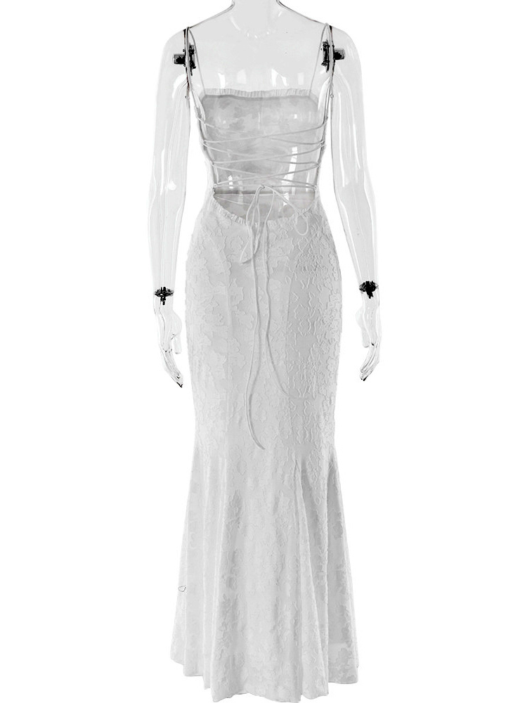 White Bodycon Maxi Dress With Lace Up Back Burnout Lace Mermaid Strap Dress For Women 2025