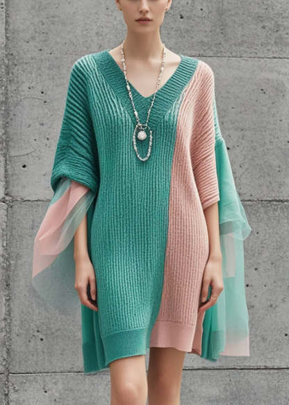 Women Colorblock Asymmetrical Patchwork Knit Sweater Dress Fall